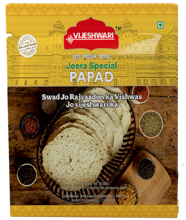 Experience the authentic taste of tradition with our Jeera Special Papad, meticulously handcrafted using age-old methods passed down through generations. Each papad is infused with the warm, earthy aroma of premium-quality cumin (jeera), giving it a unique flavor that perfectly complements any Indian meal. Known for its light, crispy texture and irresistible taste, this papad is the ideal accompaniment—whether roasted, fried, or microwaved.